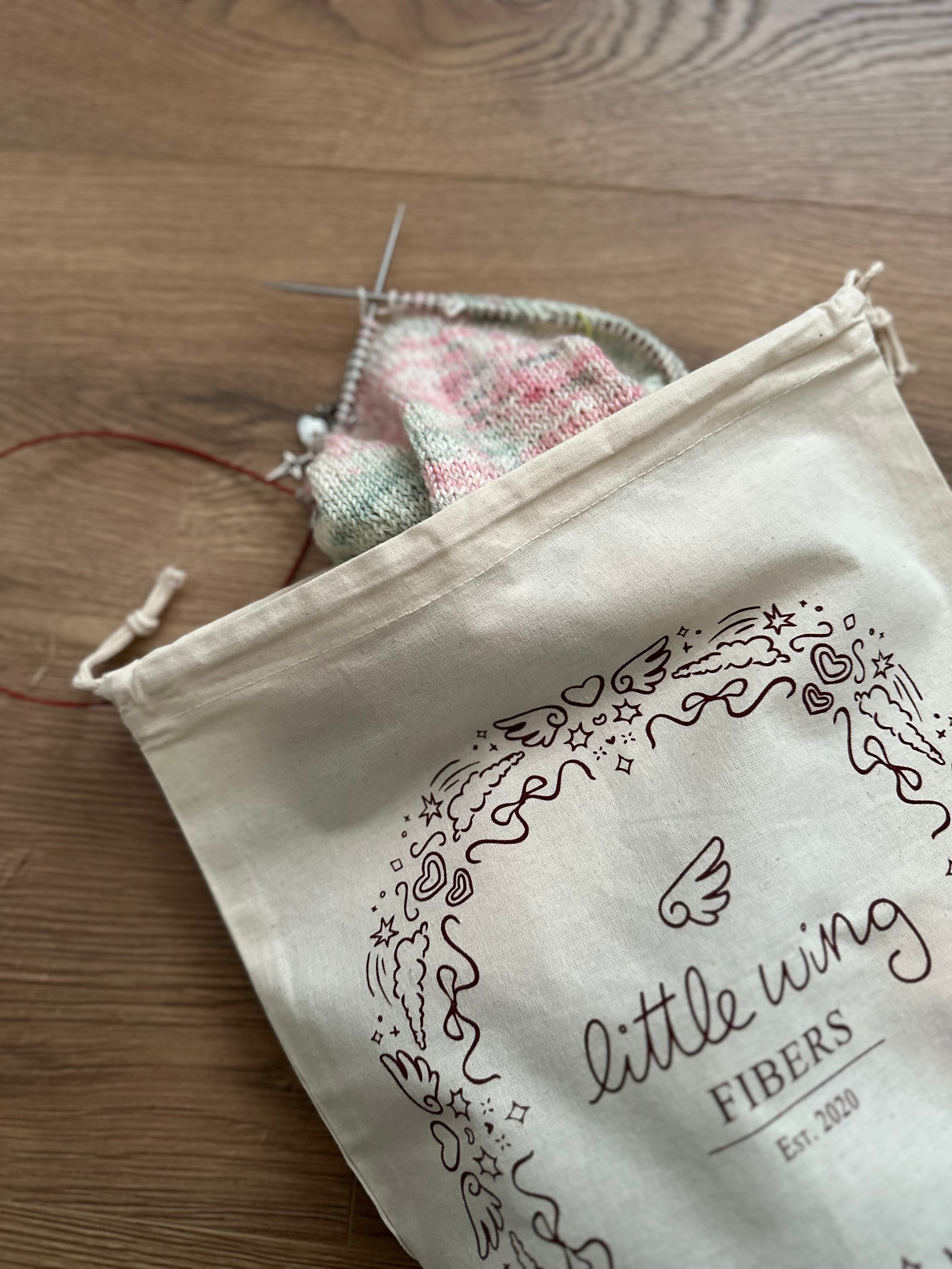 Stash your projects in these adorable Little Wing Fibers project bags! Fits everything from a sock to your latest sweater project!